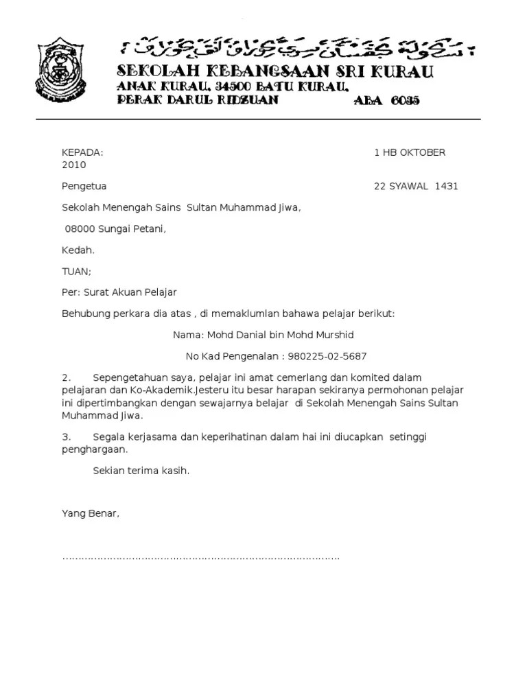 Sk hicom rasmi pengesahan tawaran tahun 1 2019 bagi . Surat pengesahan murid 2 dubai khalifa. Contoh surat pengesahan murid sekolah. Contoh surat amaran salah laku pelajar. Contoh surat pengesahan pelajar dari pusat pengajian. Student affairs contoh surat akuan sijil berhenti sekolah. Surat pengesahan pelajar sekolah menengah. Sekolah kebangsaan bayan lepas 2.